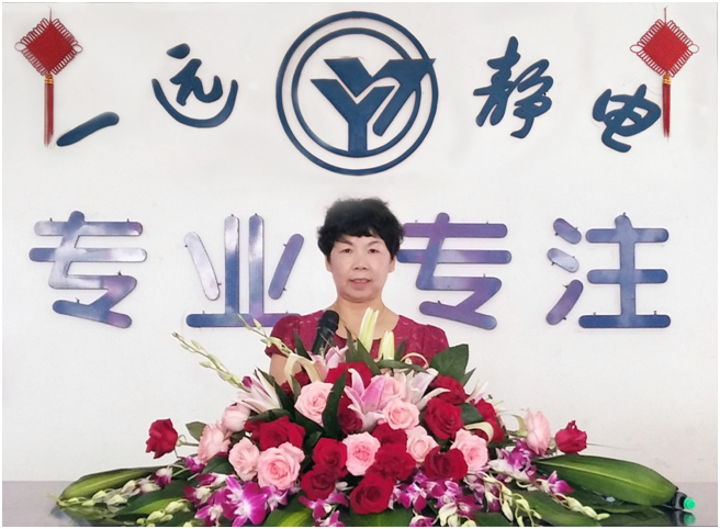 ? ? ? ?今天定的是一個特殊的日子,是我們一遠(yuǎn)靜電人二十五周年的司慶日,因?yàn)槲覀児咀匀掌谑?月8日,所以我們今天歡聚一堂來共同慶祝與見證。首先我代表公司對大家一直在平凡崗位上默默支持與付出表示衷心感謝!還有經(jīng)銷商、客戶、供應(yīng)商、同行、協(xié)會領(lǐng)導(dǎo)以及各級政府和社會相關(guān)人士給予的大力支持、熱切關(guān)心和無私幫助,借今天我們一遠(yuǎn)靜電公司喜慶的日子,對上述的相關(guān)組織與人士表示最誠摯的感謝!