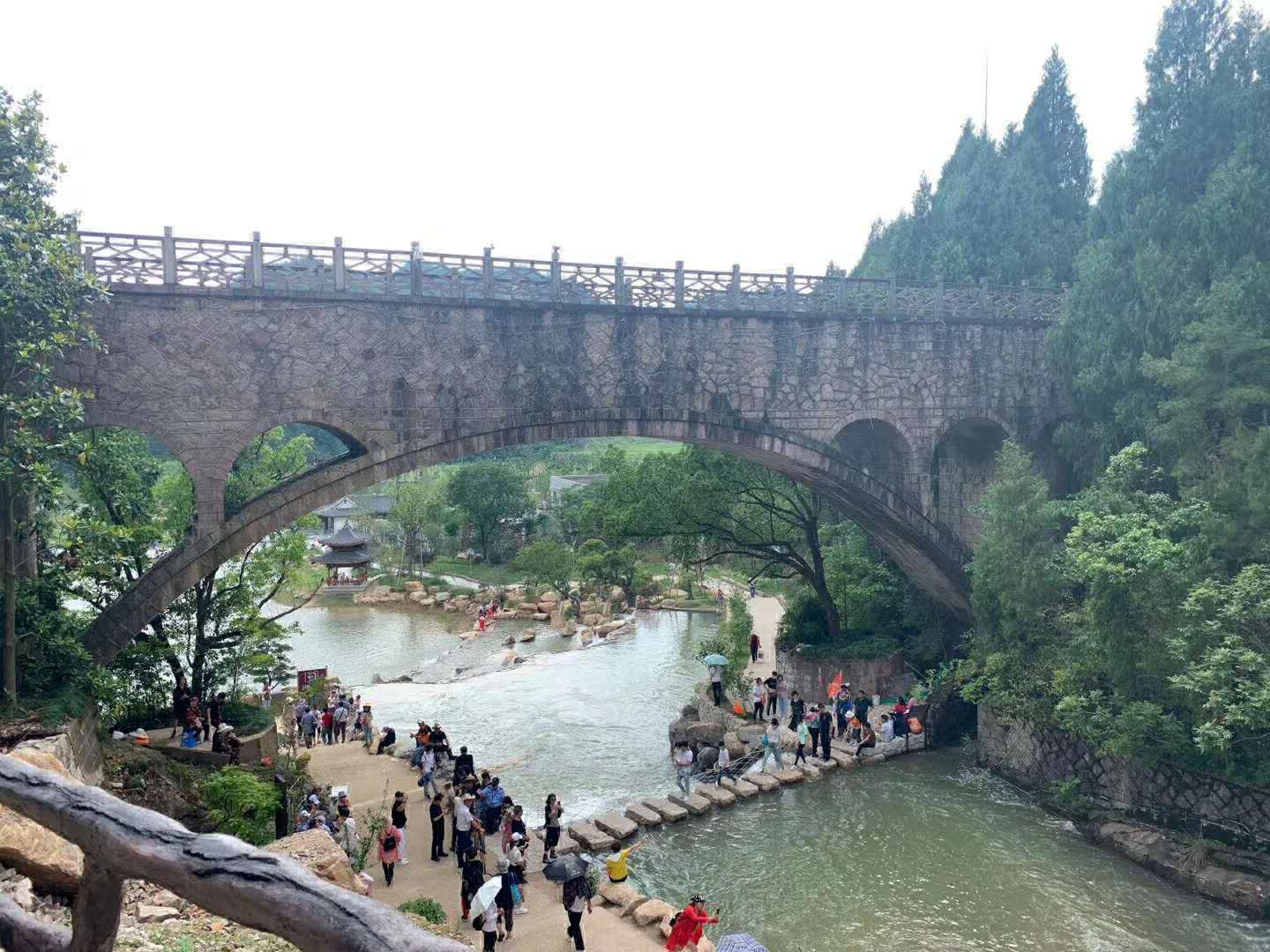 ? ? ? 早上6點(diǎn)20分,全員集結(jié)完畢坐上大巴車奔向今天行程的第一個景點(diǎn)——天臺赤城山。經(jīng)過2個小時的路程,我們來到天臺赤城山。在山下抬頭一看幾乎就能注意到赤城山的標(biāo)志梁妃塔。一進(jìn)山門,古色古香的石牌坊撲面而來。牌坊正面額題“赤城棲霞”,背面額題“濟(jì)公故里”,點(diǎn)出了赤城景區(qū)的特色。因山上赤石屏列如城,望之如霞,故名。山有石洞十二,以紫云洞和玉京洞最著。山頂上赤城塔又稱梁妃塔,為南朝梁岳陽王妃所建。"唐李白《夢游天姥吟留別》詩:"天姥連天向天橫,勢拔五岳掩赤城。"