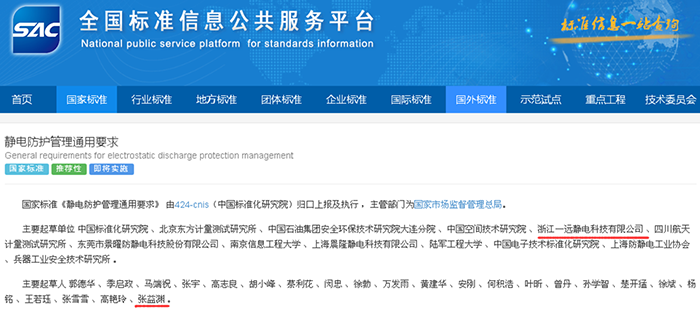 ? ? Our company participated in the preparation of GB / T 39587-2020 General requirements for electrostatic protection management, which was officially released on December 14, 2020, and the implementation date of the standard is July 1, 2021.