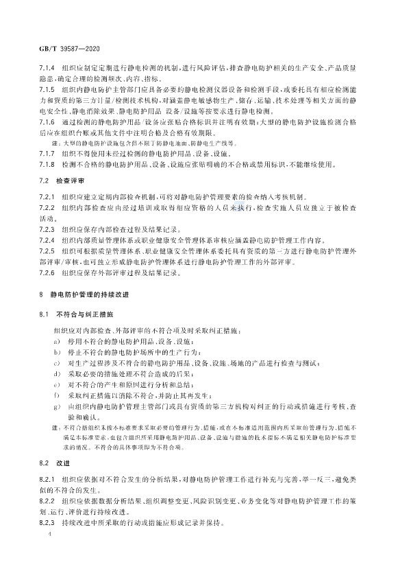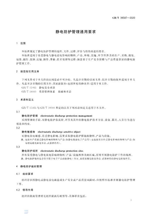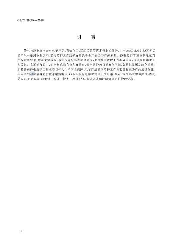 ? ? This standard specifies the requirements for the organization, document, process, evaluation and continuous improvement of electrostatic protection management.